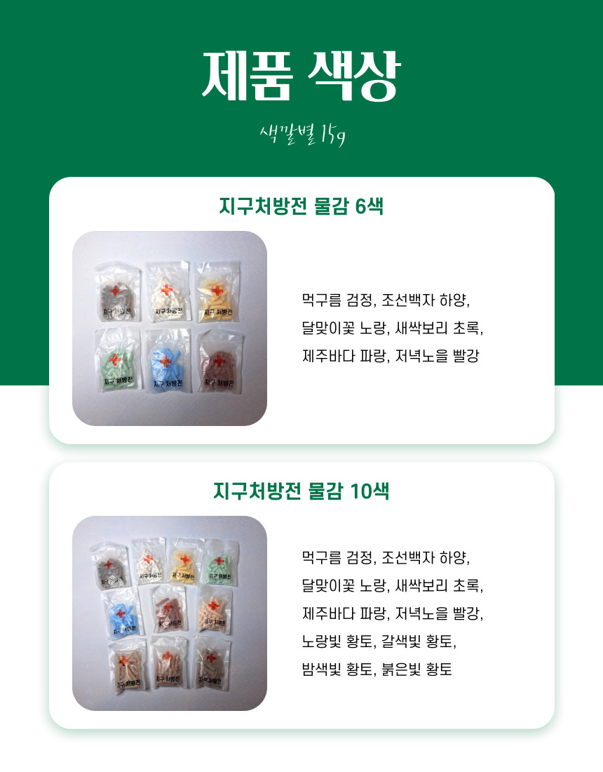 지구처방전 물감은 버려져서 환경을 오염시키는 굴패각과 뿔소라를 활용하여 만든 친환경 물감입니다. 돌, 나무, 종이 어디든 자유롭게 색을 칠할 수 있으며 나뭇가지, 풀잎 등을 활용하여 자연미술 창작활동을 할 수 있습니다. 특히 종이액자와 풀을 사용하면 실내외에서 다양한 평면, 입체 창작 표현 활동이 가능합니다.